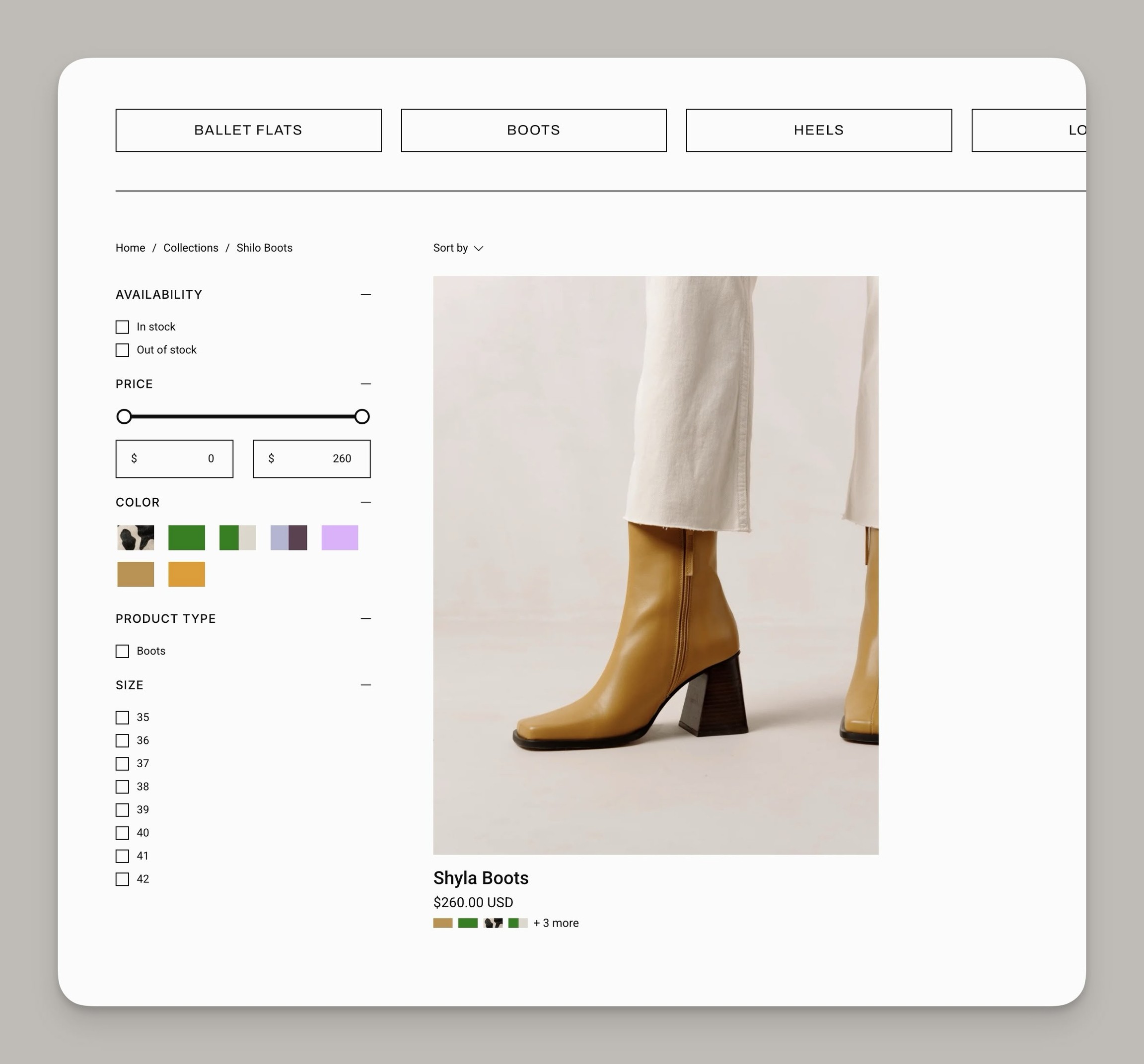 Palo Alto supports metaobjects for the Siblings feature. Along with the Product form, introduced in version 8.0, sibling swatches are also supported in the Product Card: