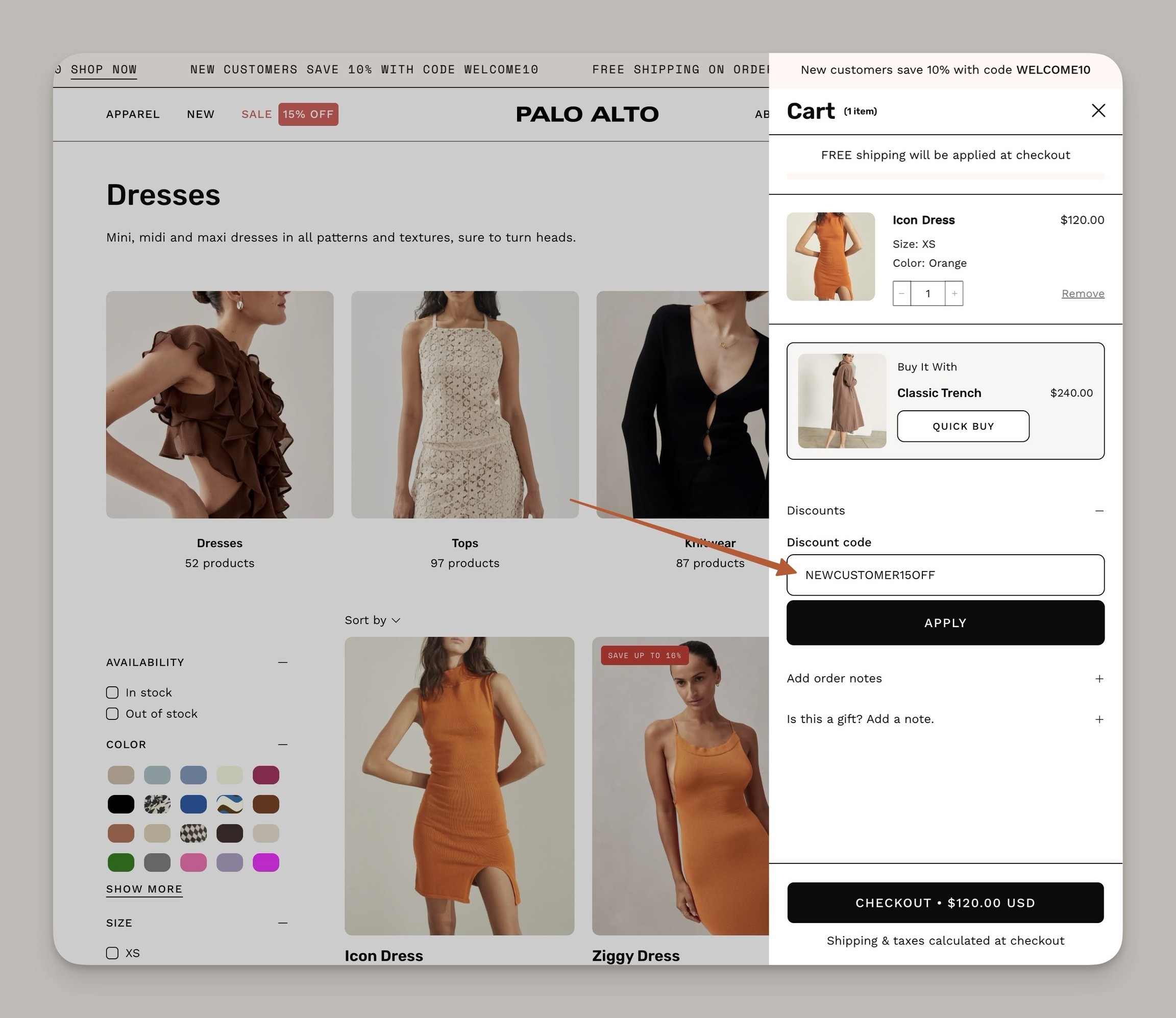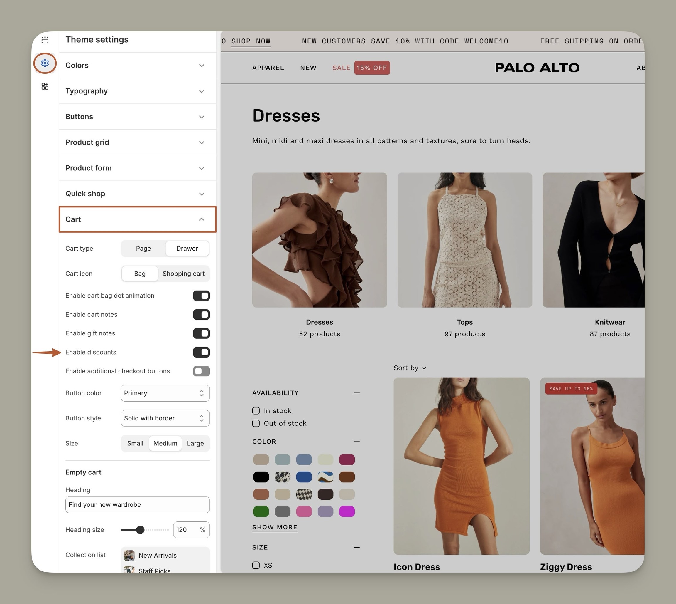 With Palo Alto 8.0, customers can now add a discount code to the cart drawer or cart page: