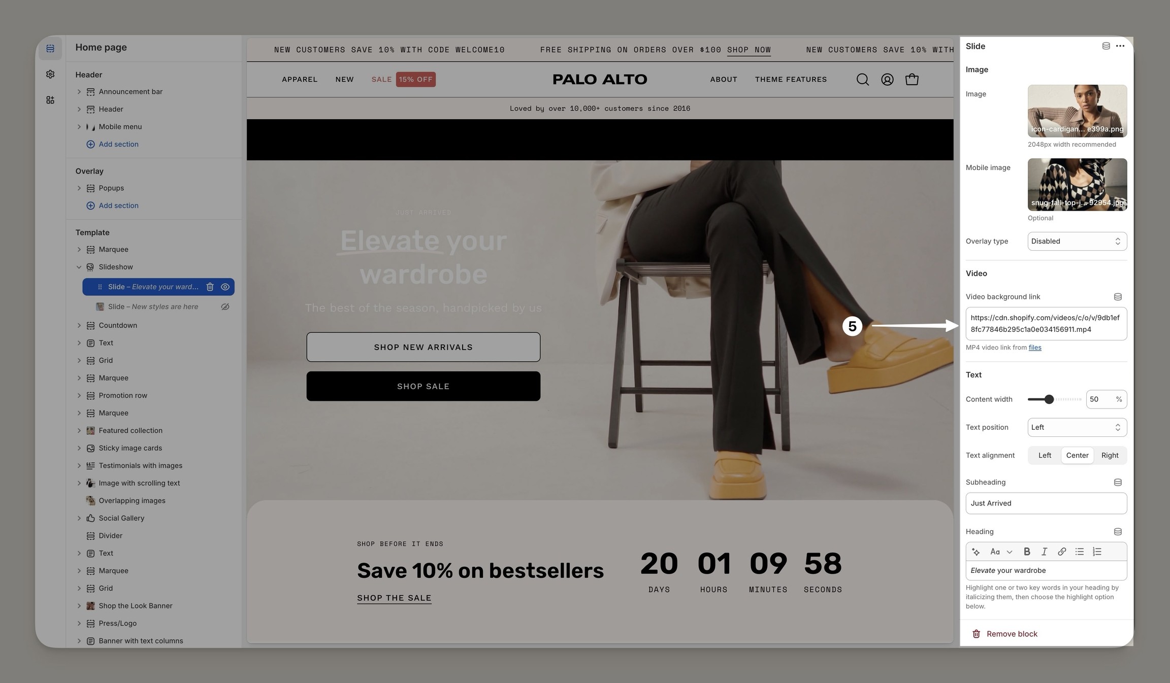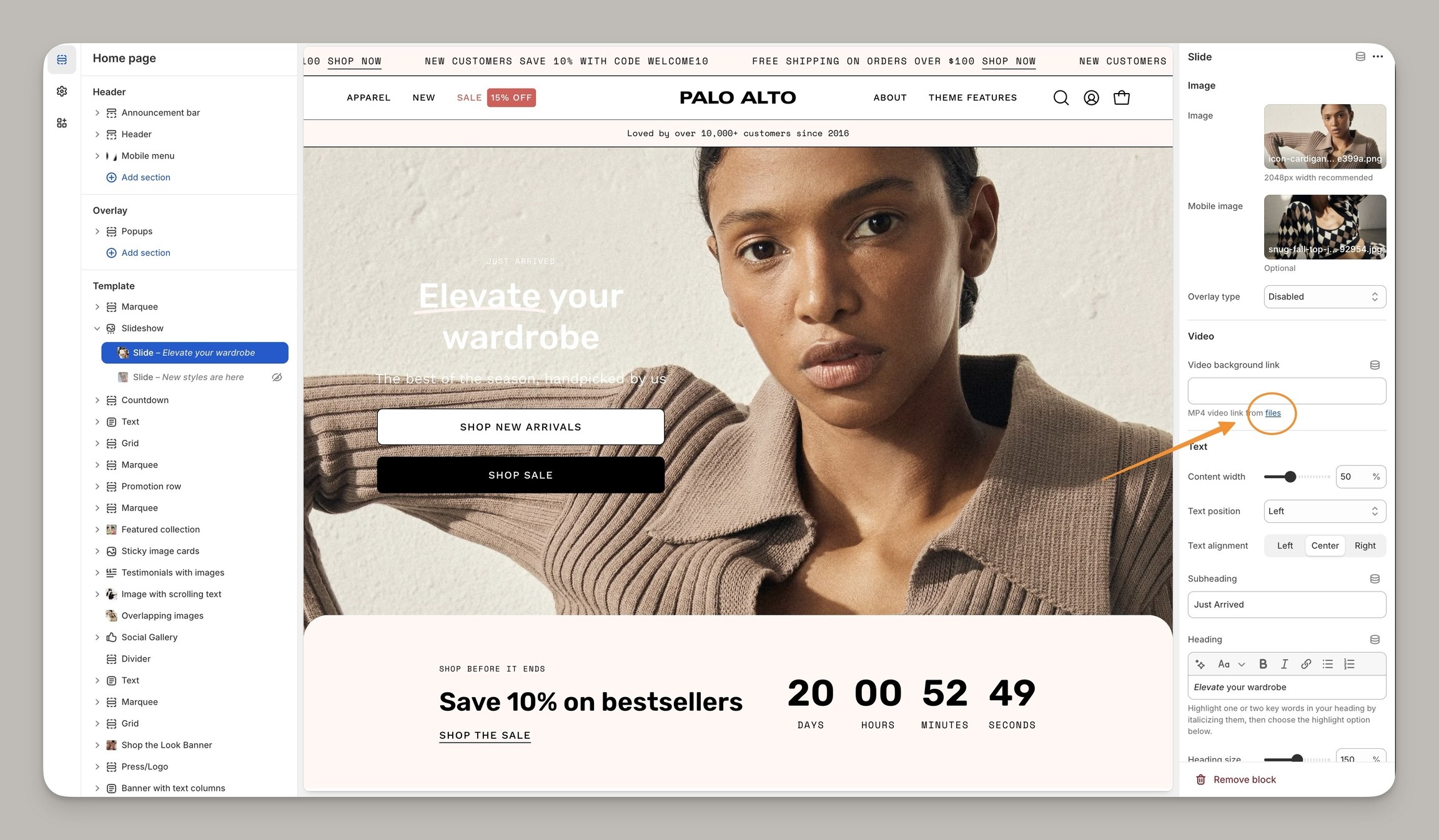 Palo Alto uses Shopify-supported MOV and MP4 video formats directly to this section.