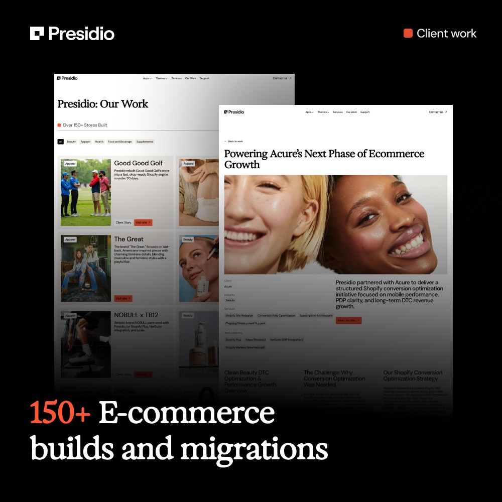 Over the coming months, we’ll be publishing more content on Shopify migration frameworks, storefront optimisation patterns, new Presidio apps and tools, and detailed client case studies.